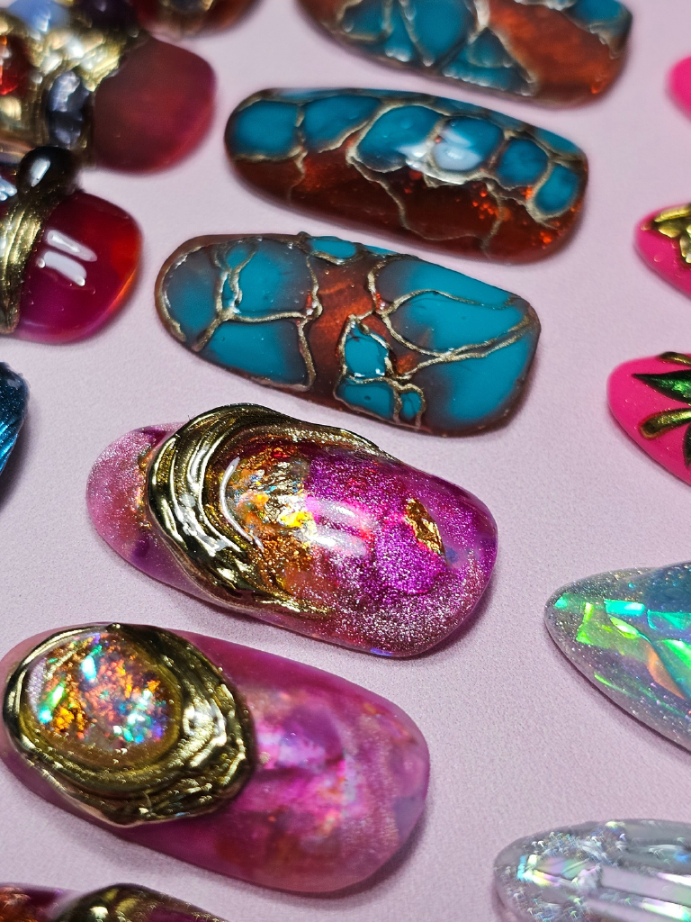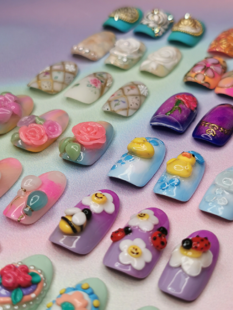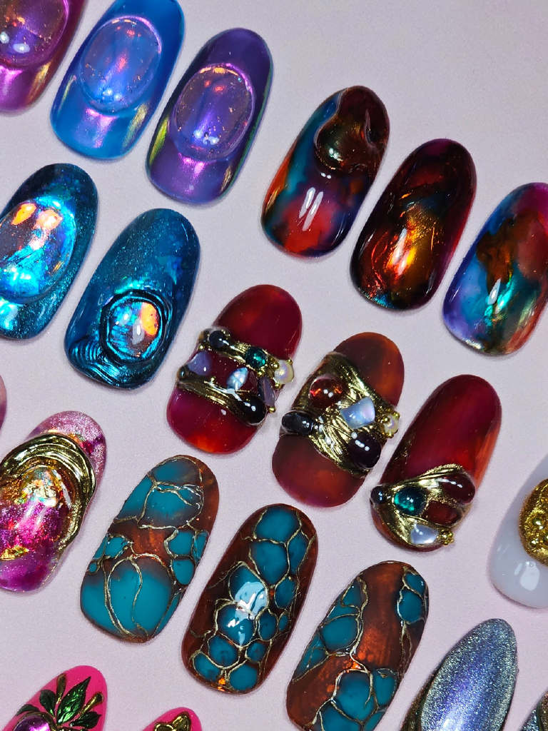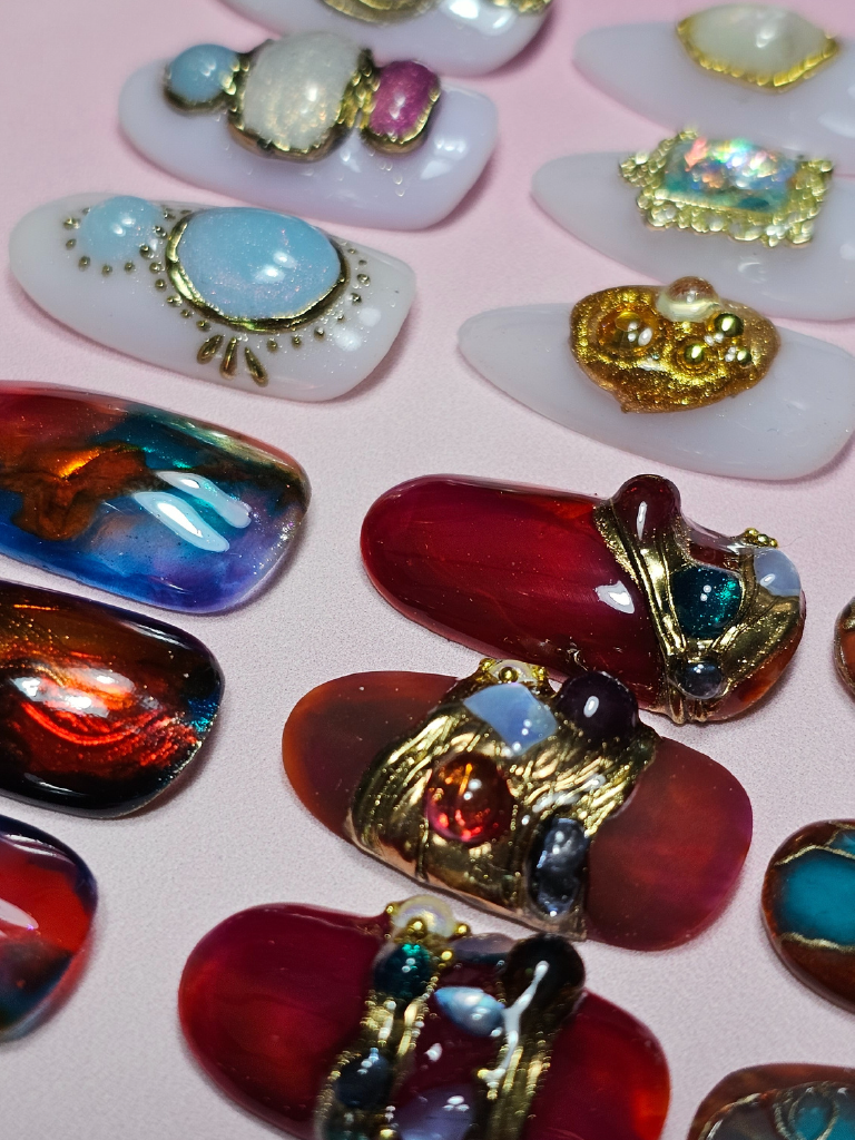 🌟 Además, exploraremos técnicas coreanas como creación de relieves, gemas y fondos tipo layering para lograr diseños con texturas y profundidad.