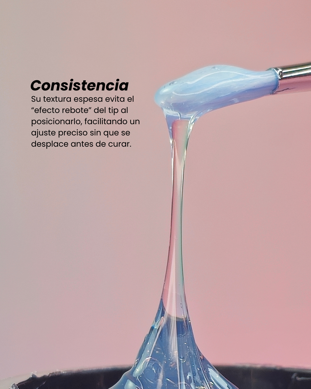 🔹 Consistencia densa y controlada: evita el temido “efecto rebote” al colocar el tip, permitiendo un ajuste perfecto antes de curar.
