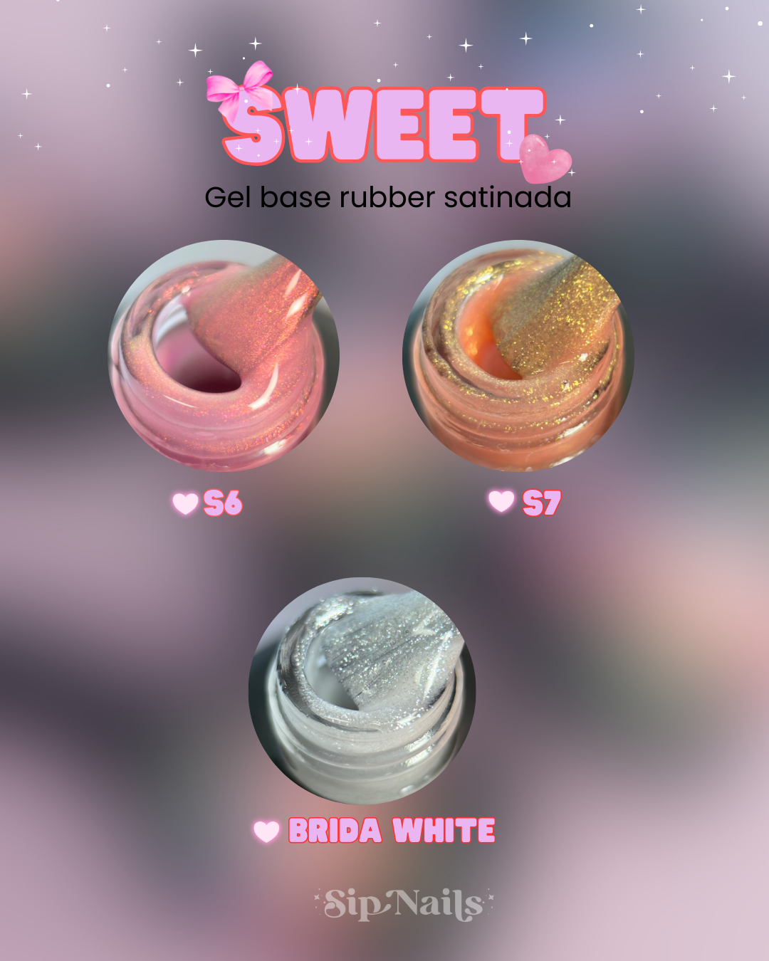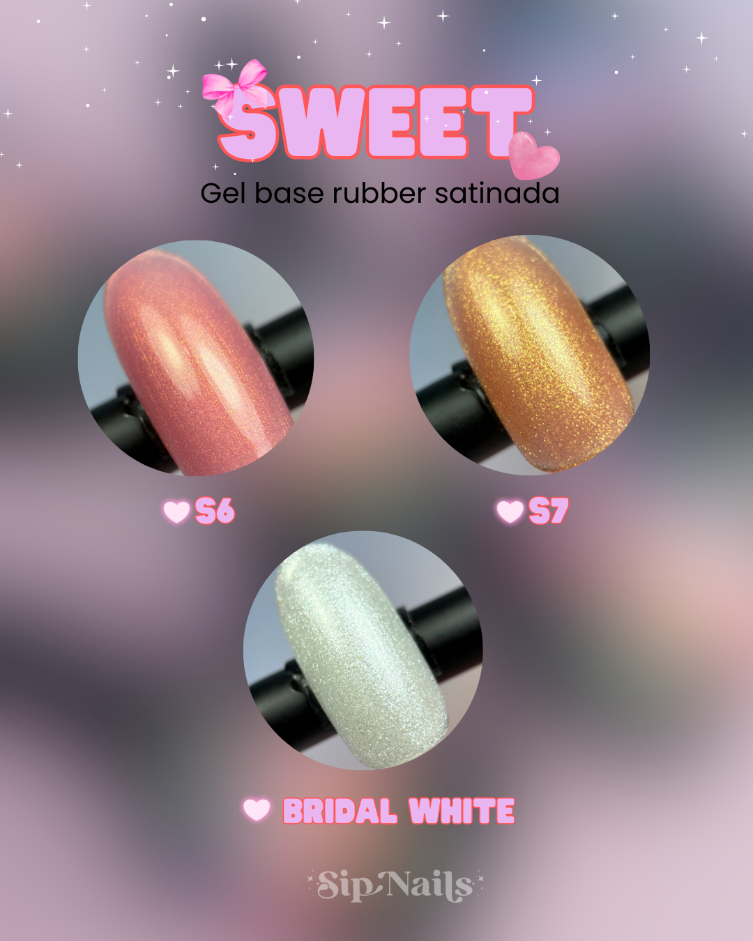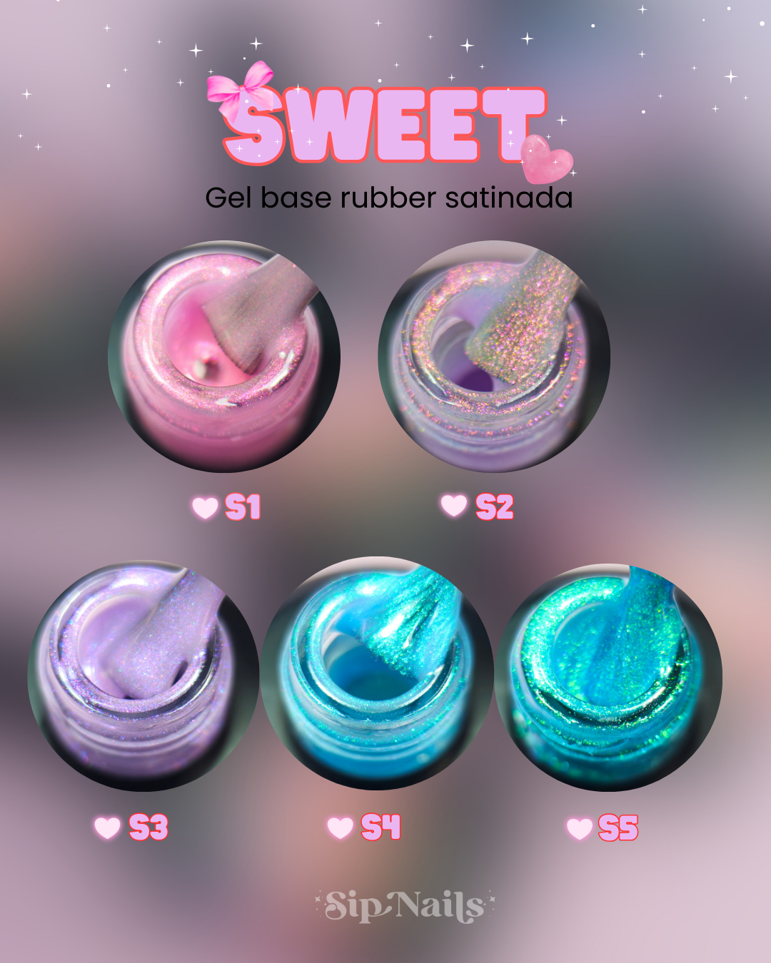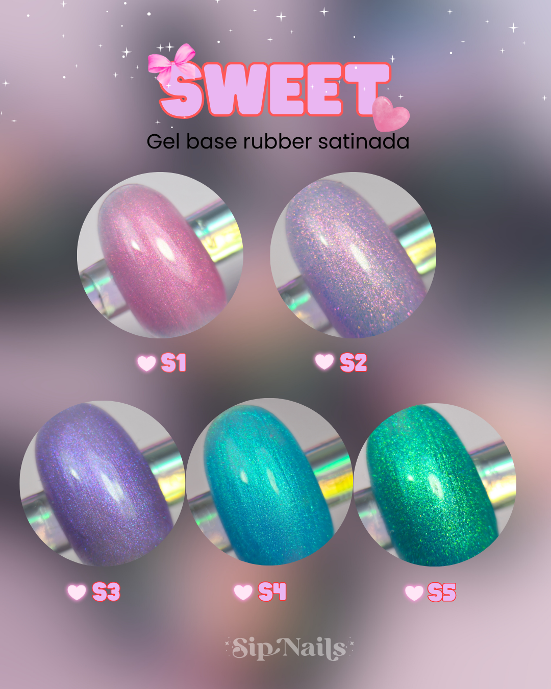 Nuestra colección Sweet combina la flexibilidad y adherencia de un rubber gel, con un acabado satinado lleno de destellos mágicos 🌟.