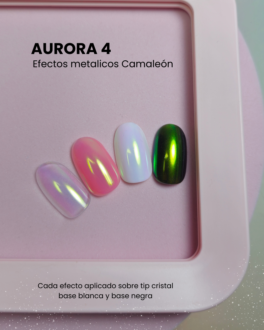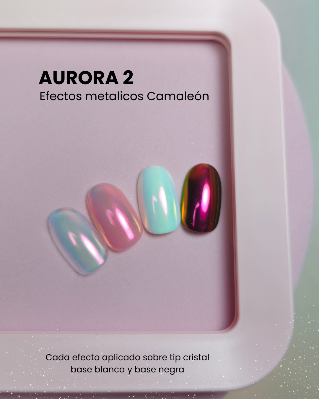 Dale vida a tus diseños con reflejos metálicos camaleón que cambian de color según la luz y la base que utilices 🌌.