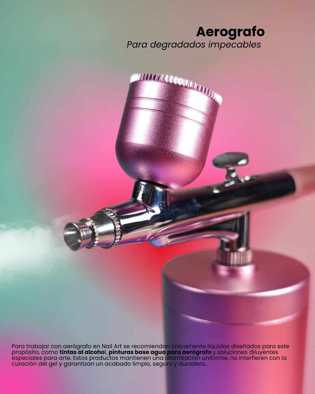 Su pulverización fina permite trabajar con precisión en fondos, difuminados, efectos fantasy y detalles artísticos que no se logran con brocha tradicional.
