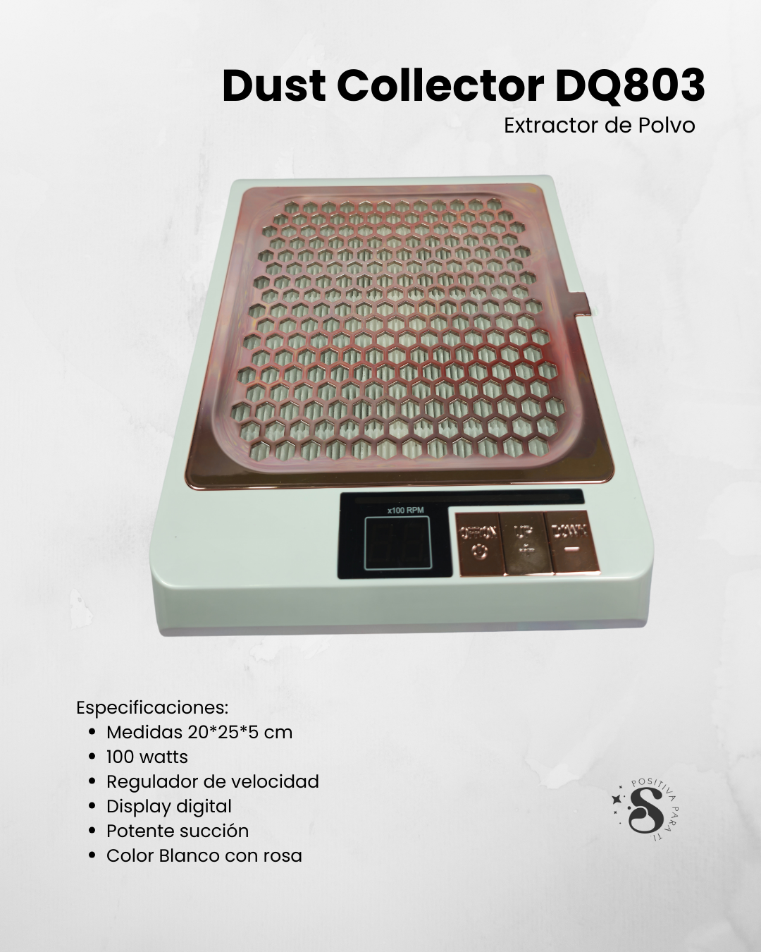 Mantén tu área de trabajo limpia y libre de residuos con el DQ803, un extractor potente y moderno diseñado para acompañarte en tus servicios diarios. Su sistema de succión de alto rendimiento, combinado con regulador de velocidad y display digital, te permite trabajar con precisión y comodidad en cualquier técnica.