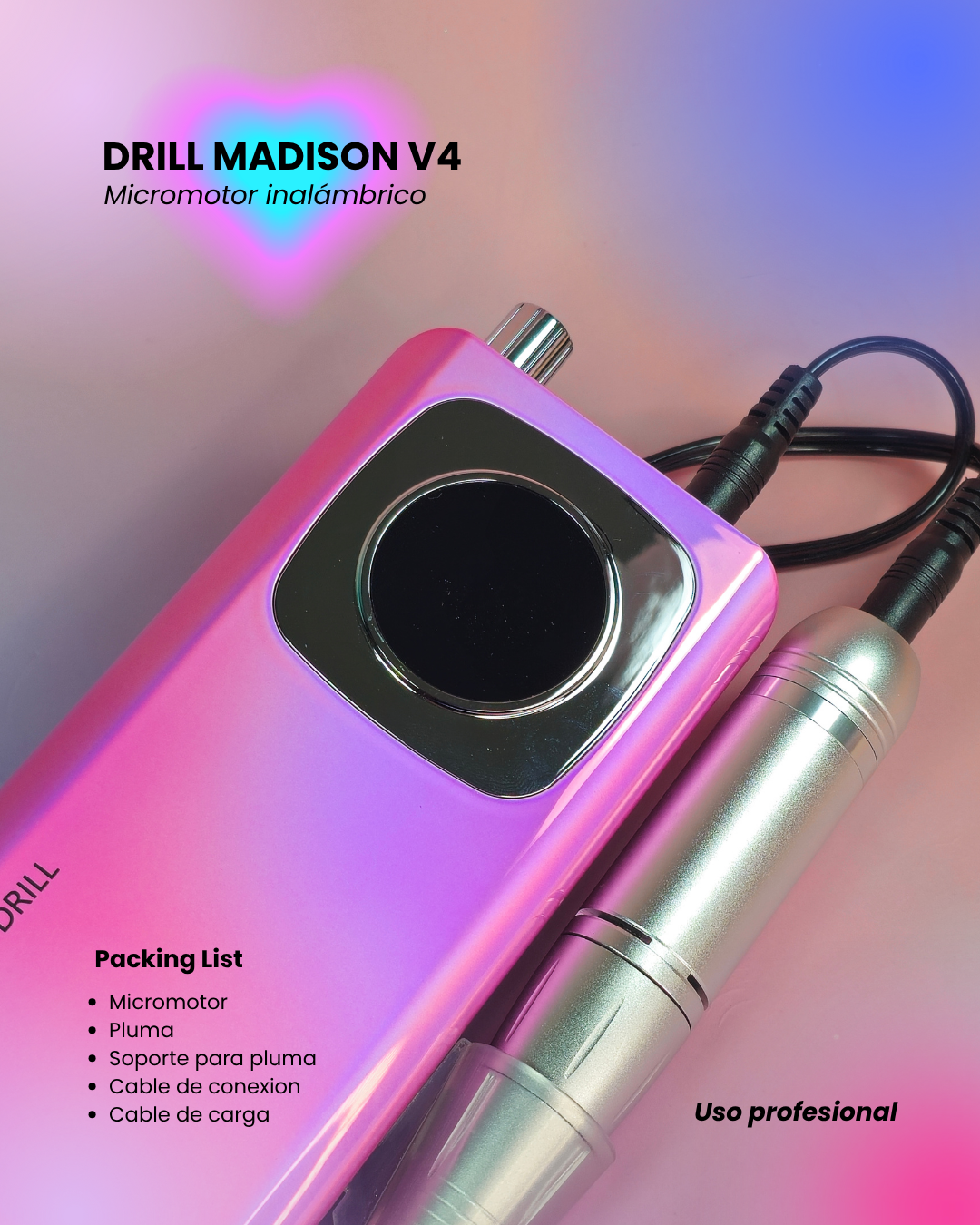 El Drill Madison V4 ofrece hasta 45,000 RPM con un motor estable y silencioso, ideal para limado, preparación y estructuras avanzadas.
