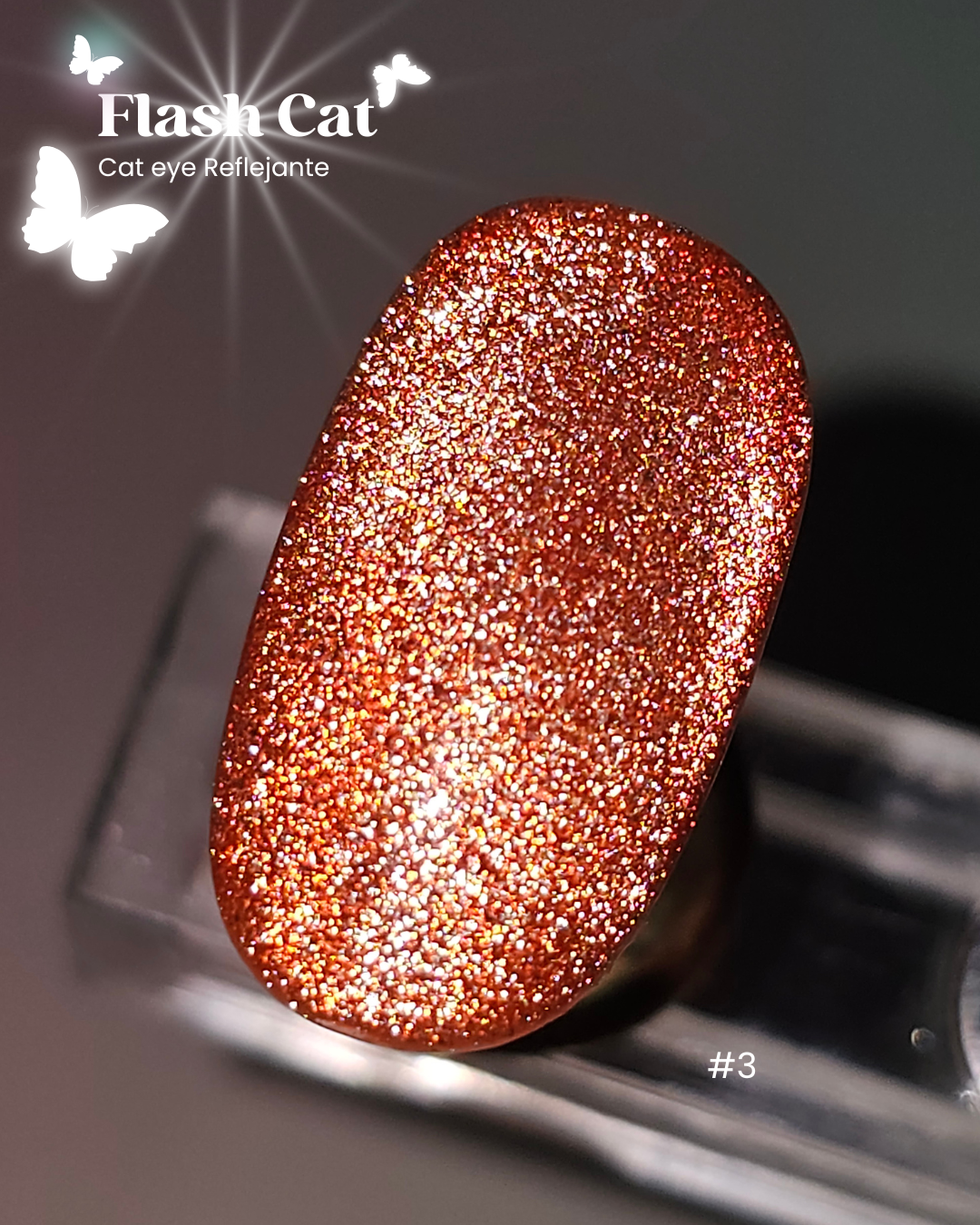 Los Flash Cat combinan la profundidad del efecto Cat Eye con el destello único del reflejo fotosensible, que cobra vida bajo la luz.
