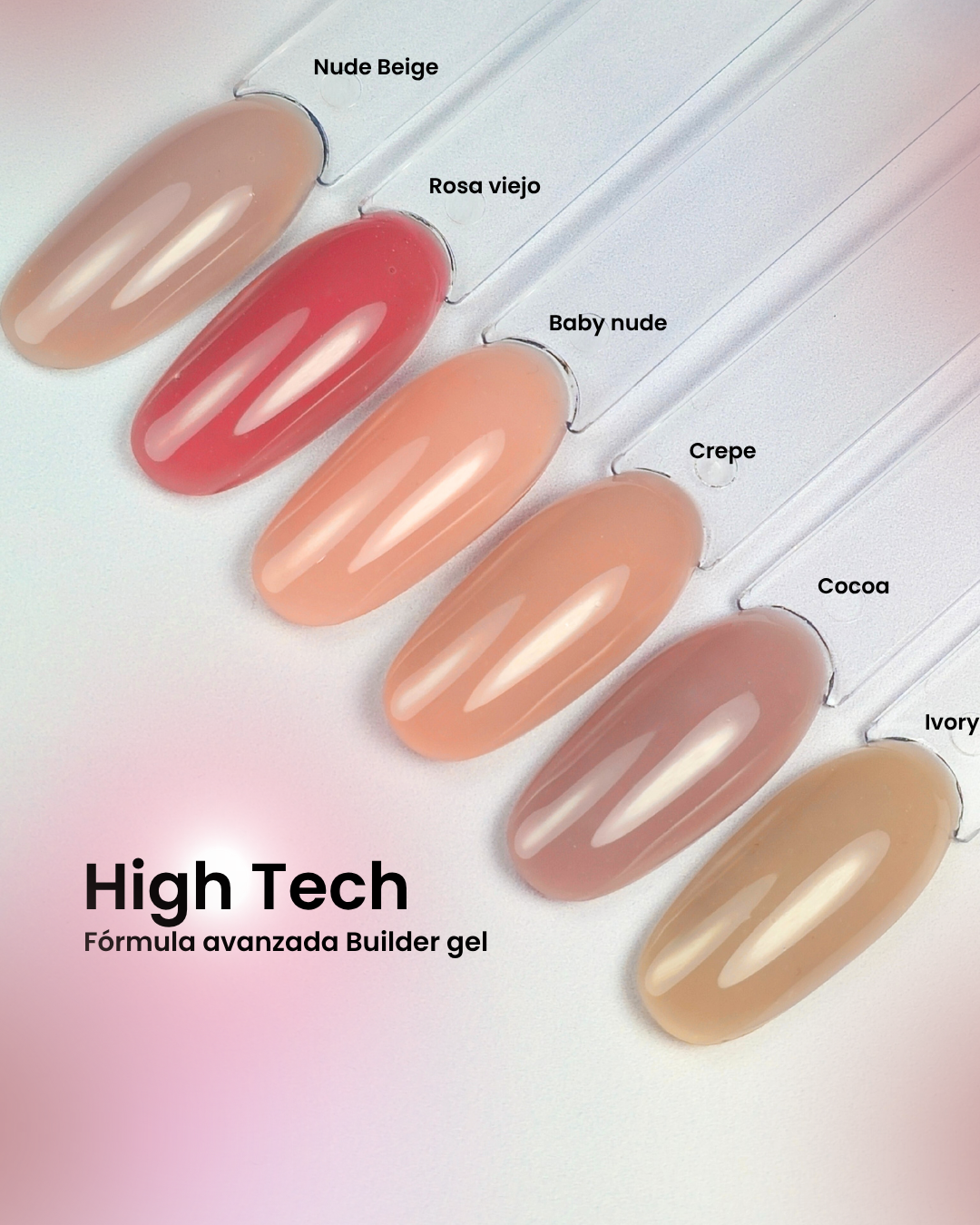 Descubre High Tech Builder Gel – Nude Beige, nuestro gel constructor de fórmula avanzada diseñado para brindar una experiencia superior tanto para la técnica como para la clienta.