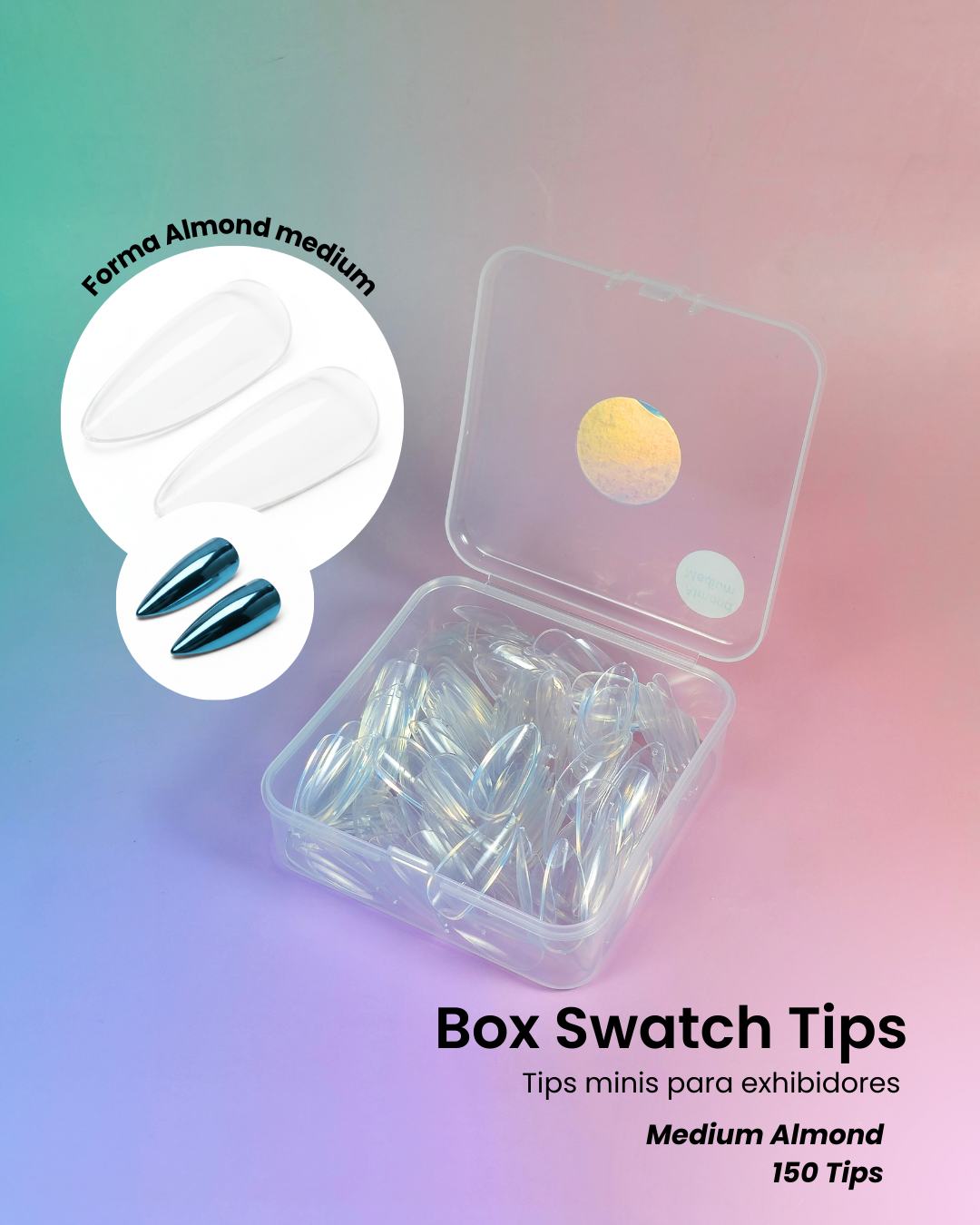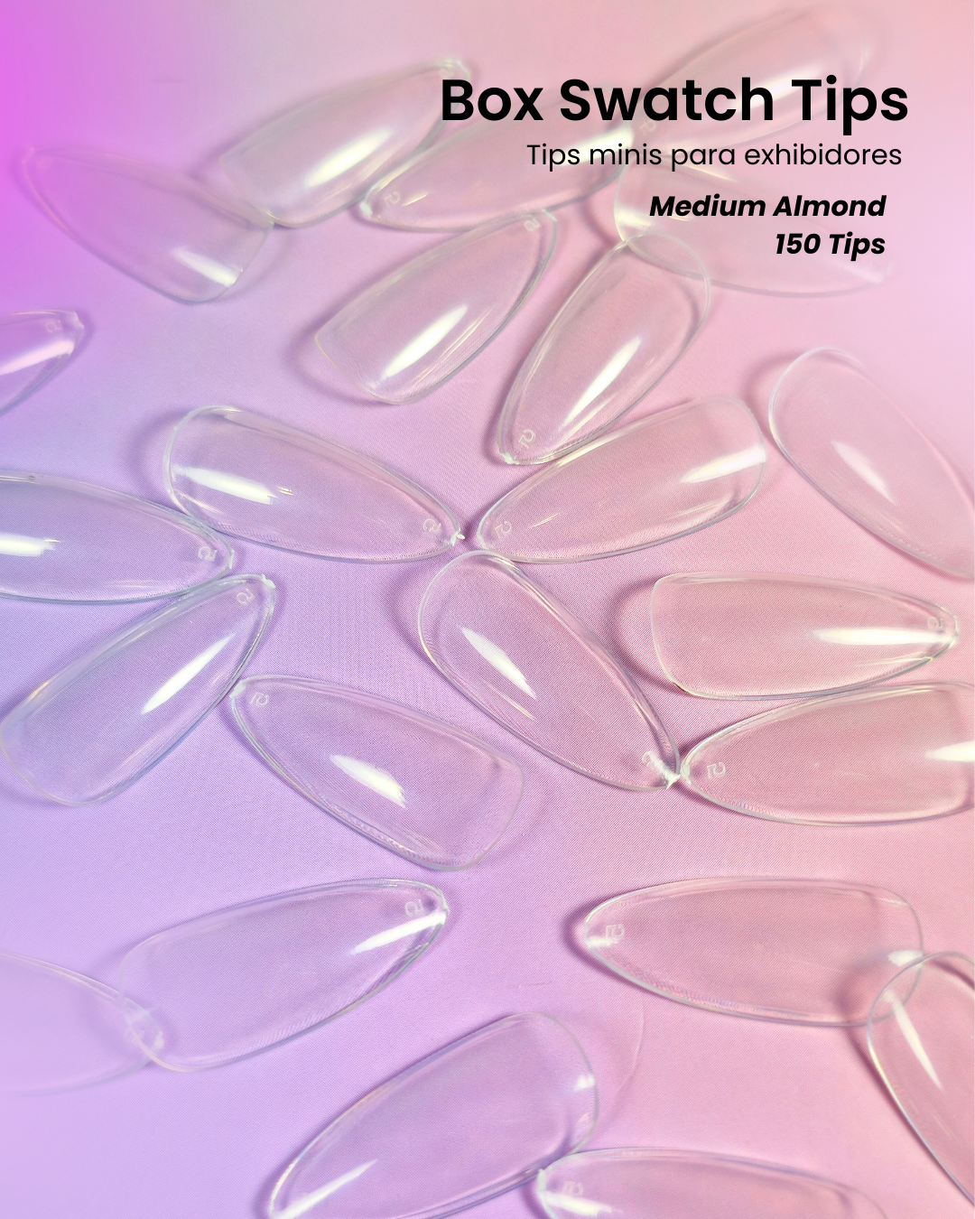 Tips minis ideales para exhibidores y muestras de color. Incluye 150 tips en forma Almond medium , perfectos para probar diseños, acabados y efectos de forma práctica y ordenada. Un básico para mostrar tu trabajo de manera profesional.