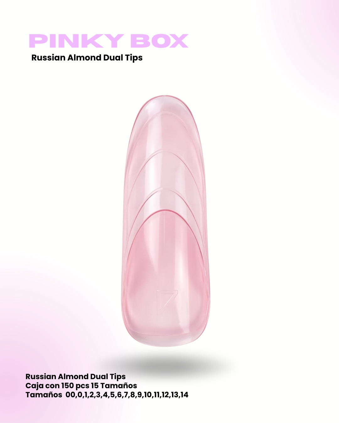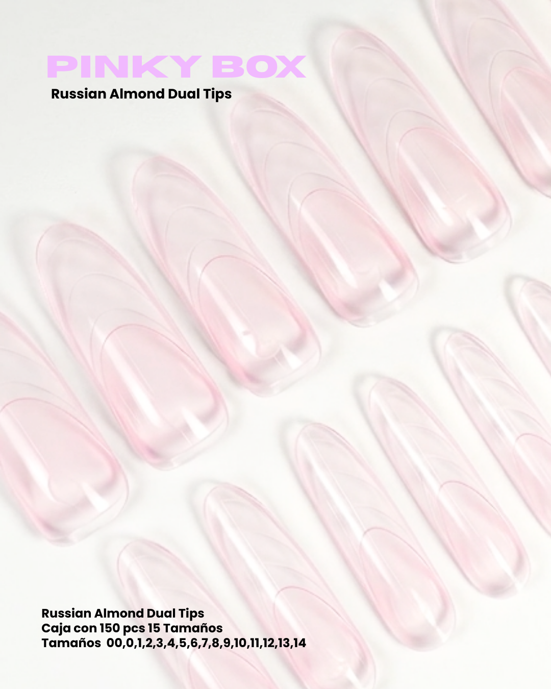 Logra estructuras perfectas en menos tiempo con nuestras Dual Tips en forma Russian Almond, diseñadas para crear uñas estilizadas, simétricas y de acabado profesional sin complicaciones. Su diseño preformado permite trabajar de manera rápida, precisa y con menor consumo de producto.